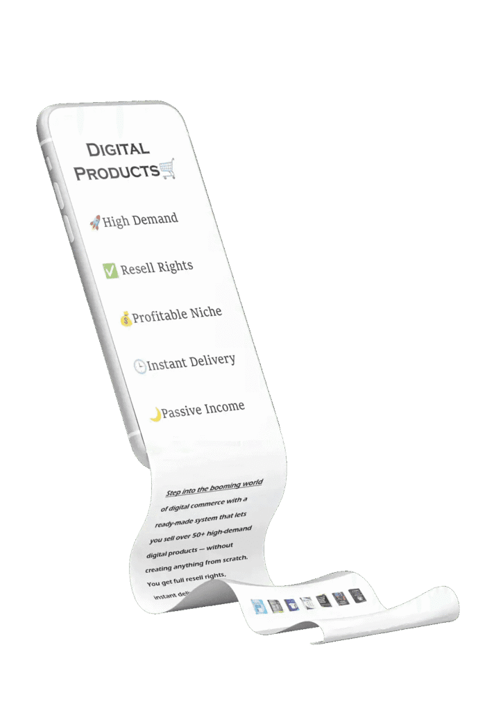 You’re getting a fully designed, mobile-friendly website preloaded with 50+ premium digital products — all with 100% resell rights. Everything is ready to go; you just add your payment details and start selling.